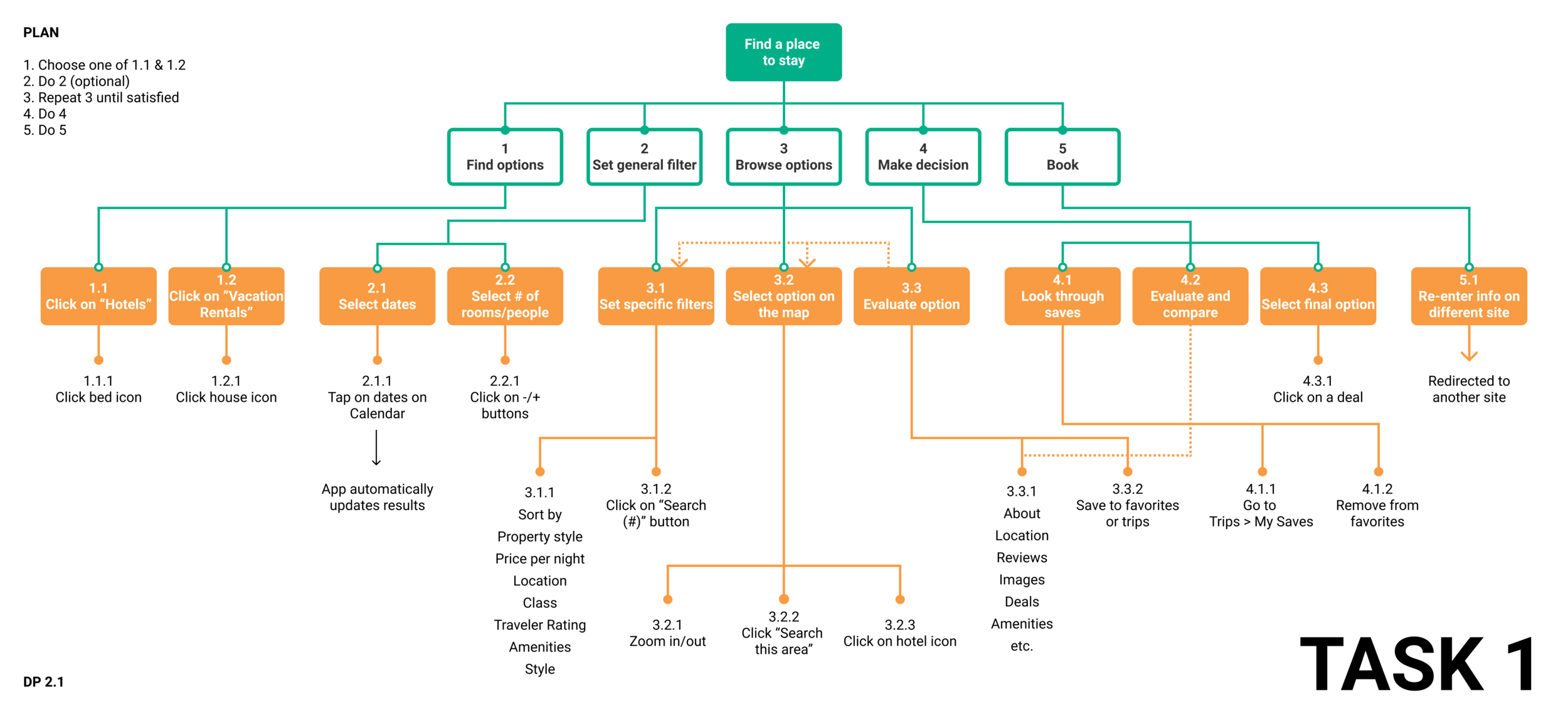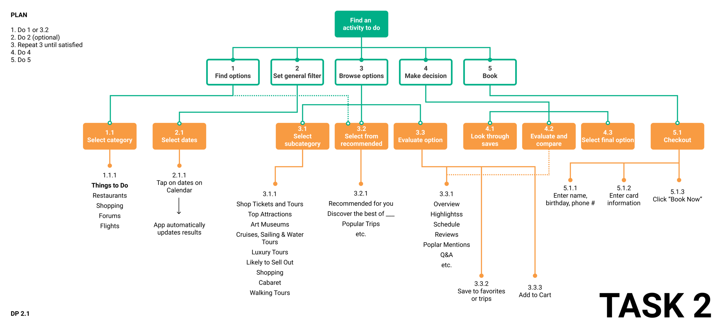 Analysis of steps required to complete three tasks related to itinerary planning in the current TripAdvisor platform.
