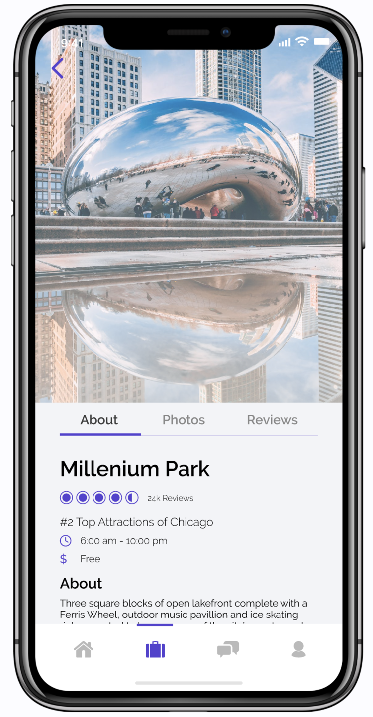 When each activity is clicked, an overview page is opened. There, the user sees the information readily found on TripAdvisor. Using both scroll and click-to-jump navigation, the user can find information as they wish.