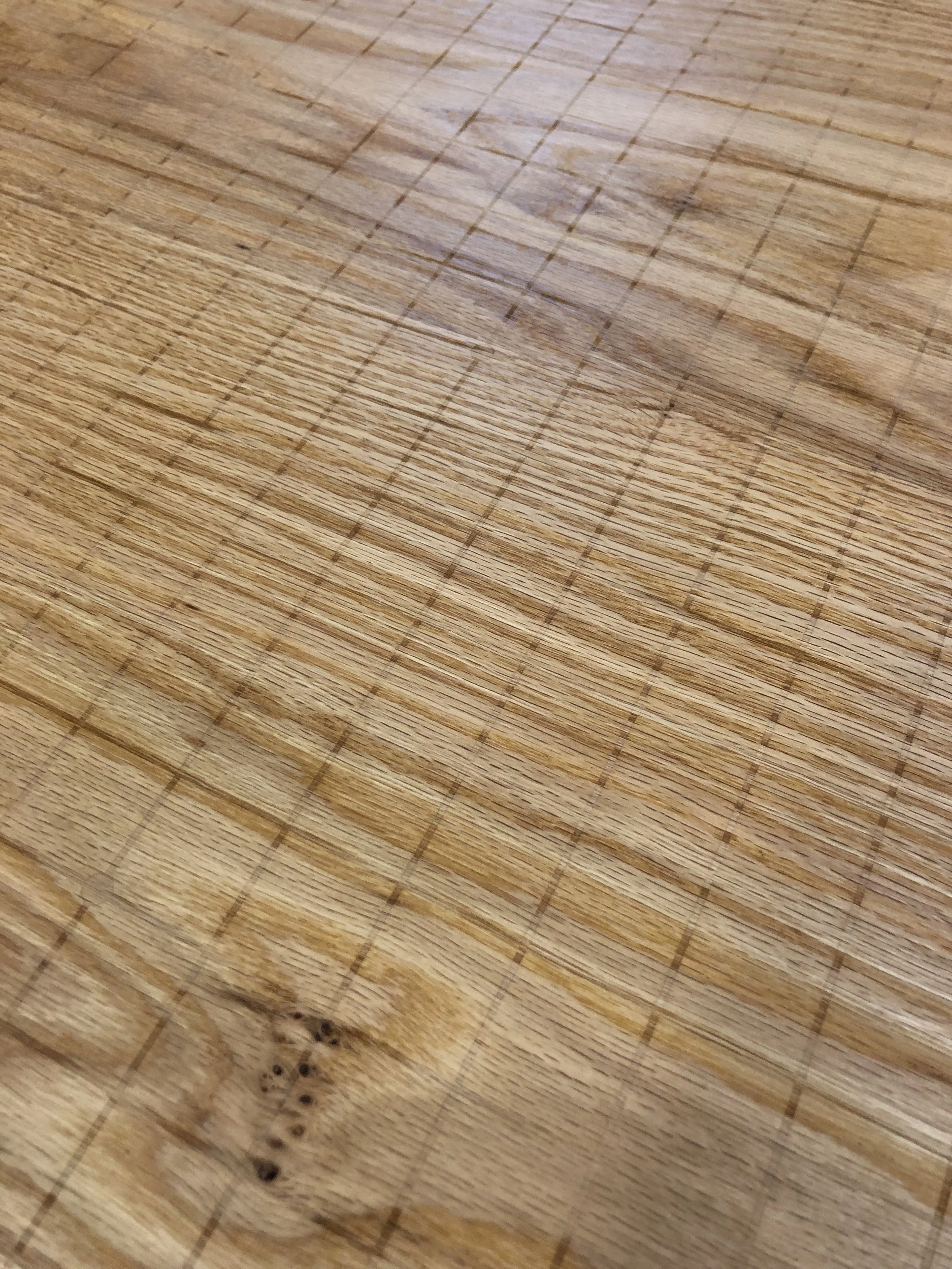 The oak started as a 10” plank, which was cut into 4 pieces and flattened using the planar and jointer. My goal was to create the original 21x21” board, so creating parallel surfaces was important to creating strong joints along the long pieces. The pieces were glued together in two phases, first by glueing the two sets of planks along their lengths to create two square boards, and then rotating the two layers and glueing vertically, so that the glue joint did not experience excessive loads.
