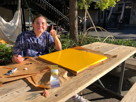 Instead, I used a vinyl cutter to create a stencil for the areas I wanted to paint. The process of removing the excess material and aligning the vinyl properly within the wooden frame were both challenging, but the end result came out nicely! I first tried to use oil paint and found that it took too long to dry, so I opted for black spray paint and was happy with the result.