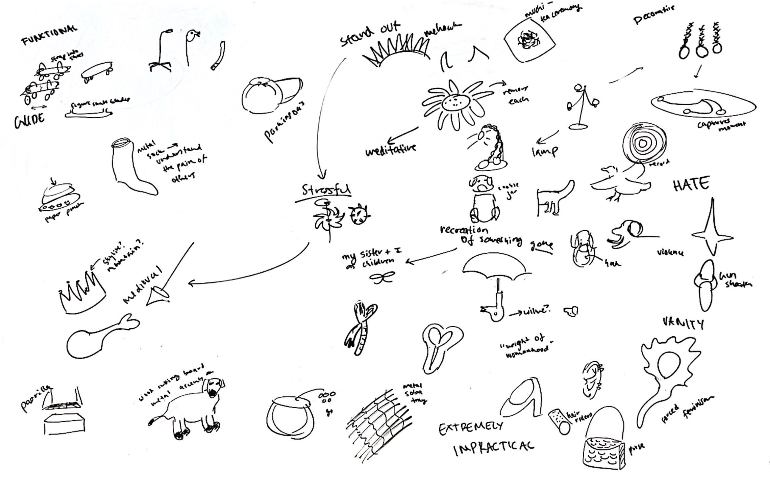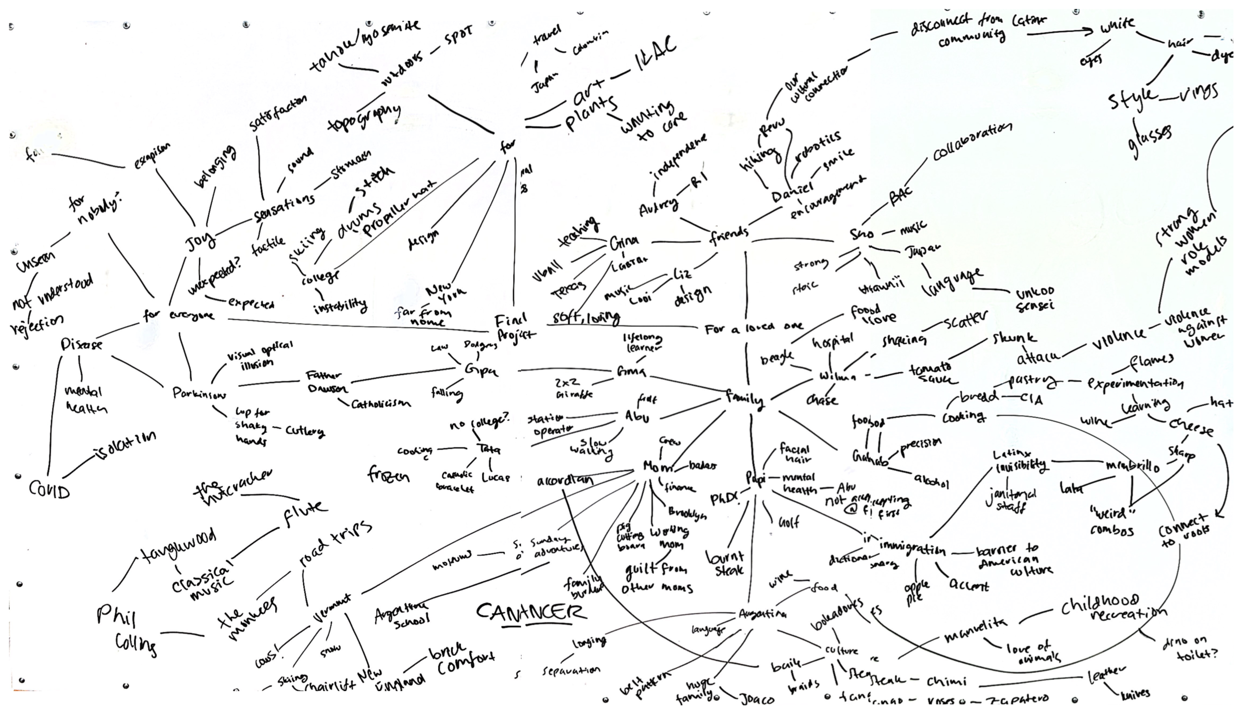 Through the lateral thiking process, I explored a wide range of ideas for this project, pushing myself to think broadly. This process included a series of brainstorming activities, including mindmapping, generating broad ideas, and consistently scrapping all ideas and starting over.