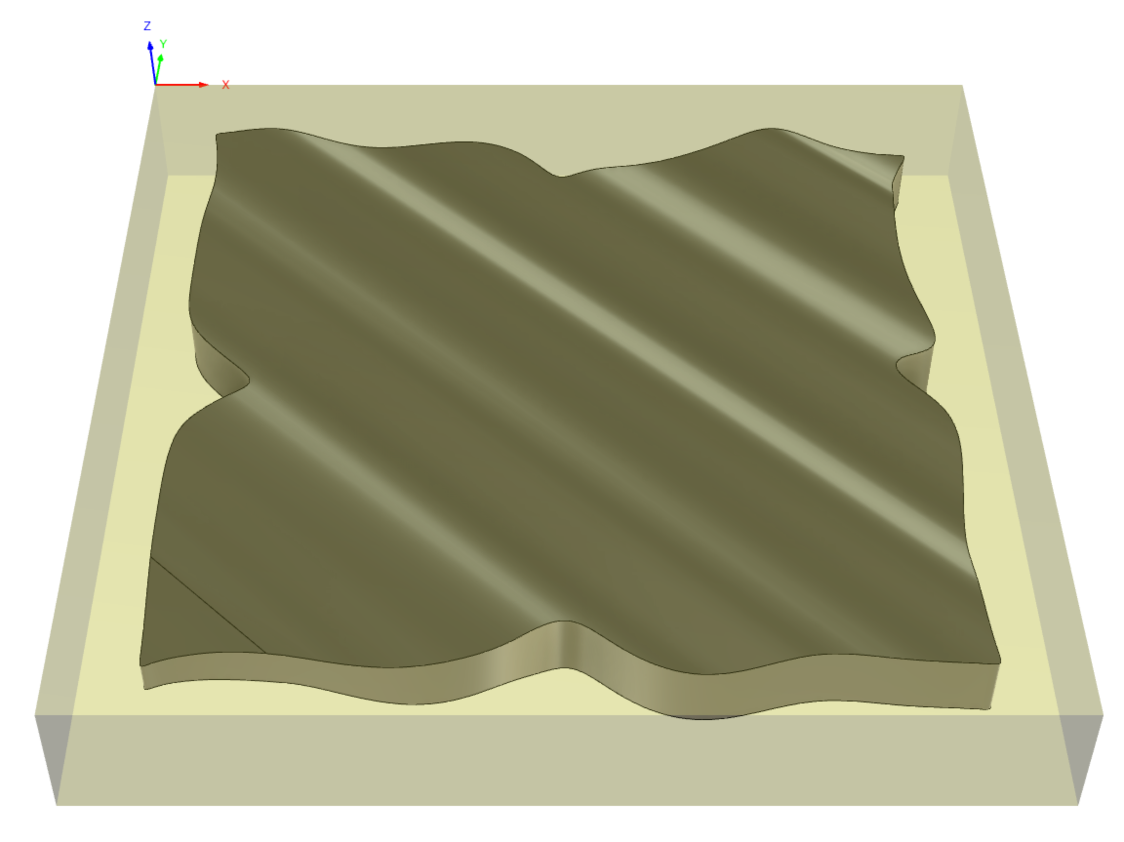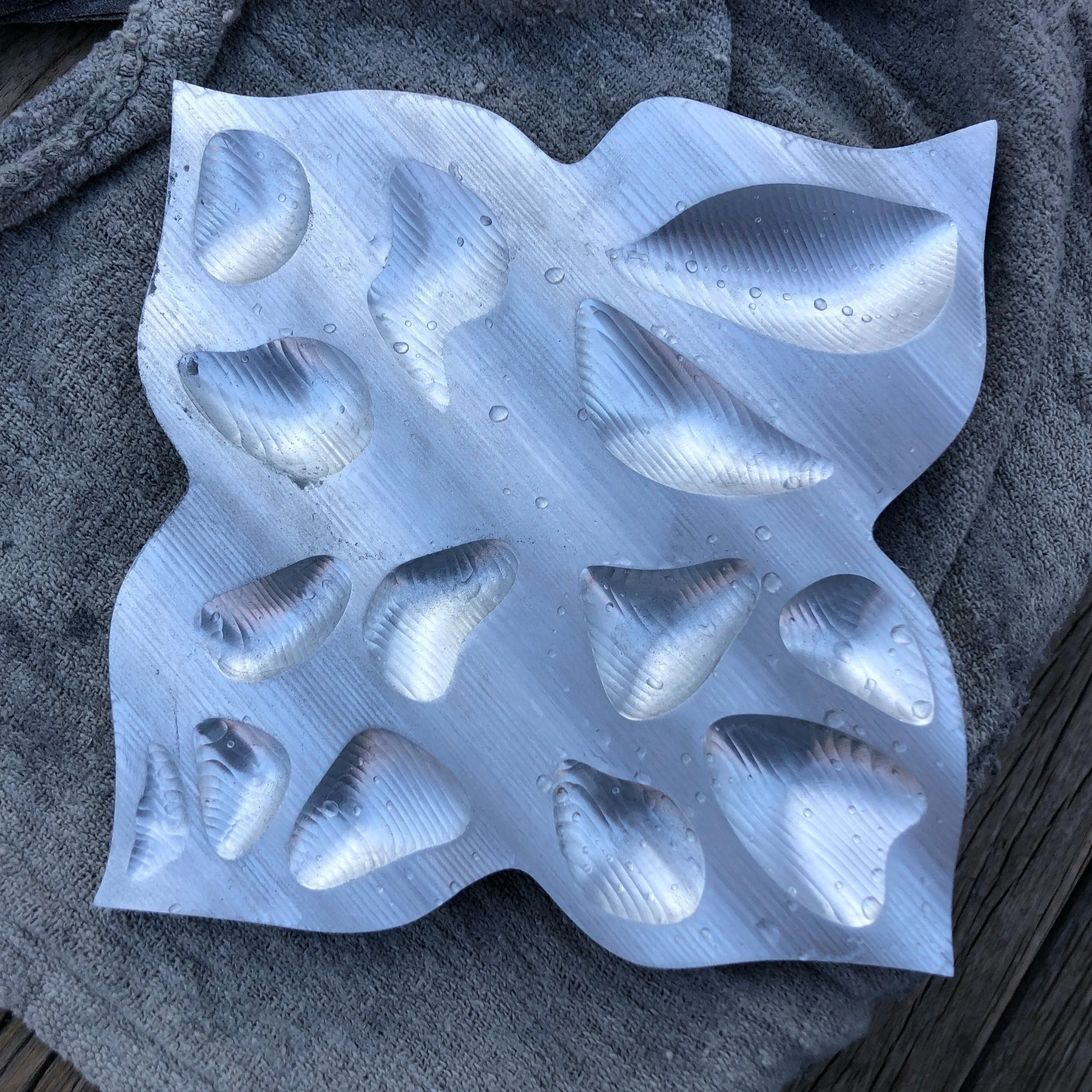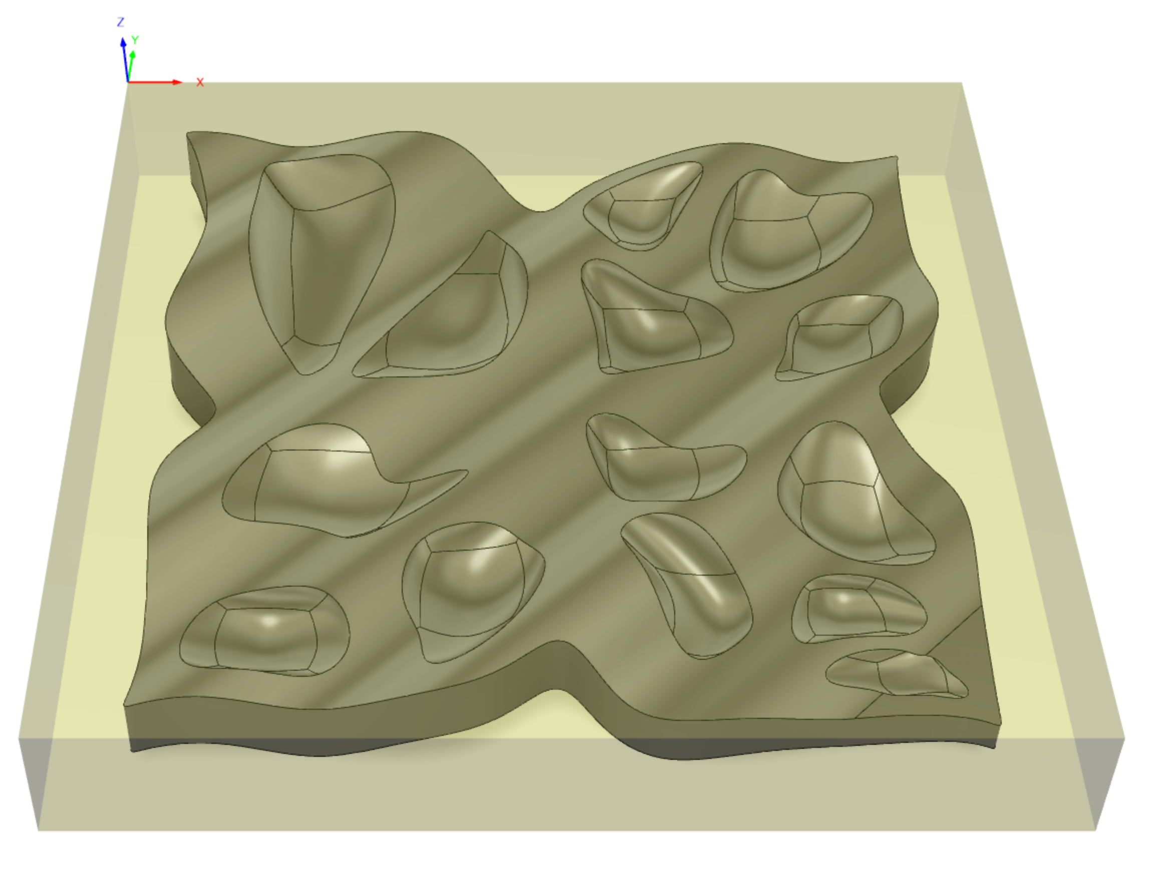 For the first size, the top face was machined and cut out. To ensure the proper negative space was left for adding wax, I made sure to cut the perimeter of the part just deep enough to allow for 0.25” of wax, while making sure there were no tool collisions. For the complicated top surface, I used a parallel finishing pass. This would then create interesting machining lines for a stark contrast on the final part.