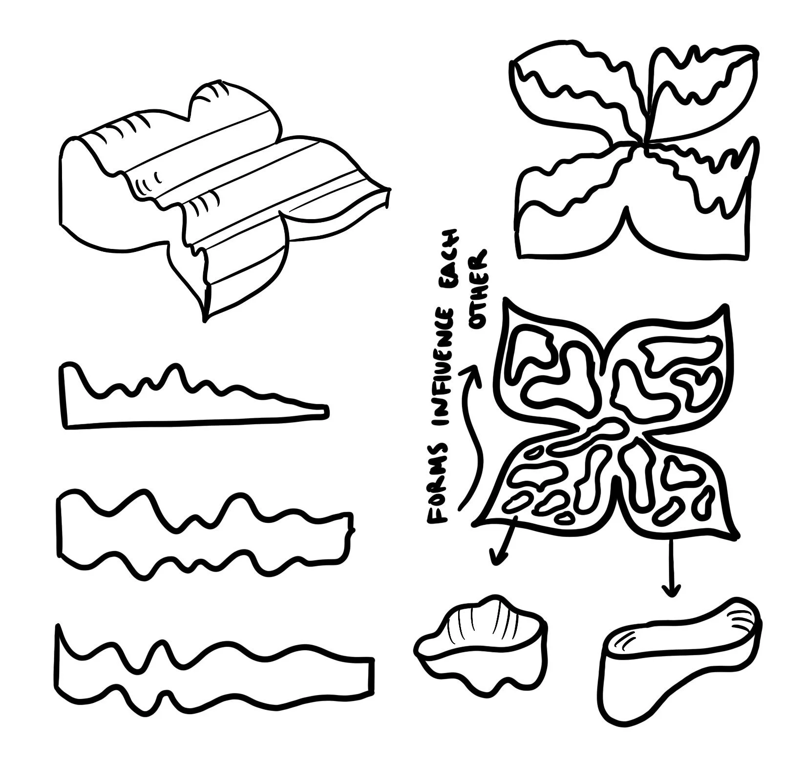 Next, I pursued visual exploration by quickly sketching designs and concepts, focusing on drastic opposition. When at a loss for new ideas, I questioned why I liked or disliked certain ideas and tried to create others by honoing in on my pre-existing opinions. Often, I found that going against my gut instinct resulted in a plethora of completely new ideas.